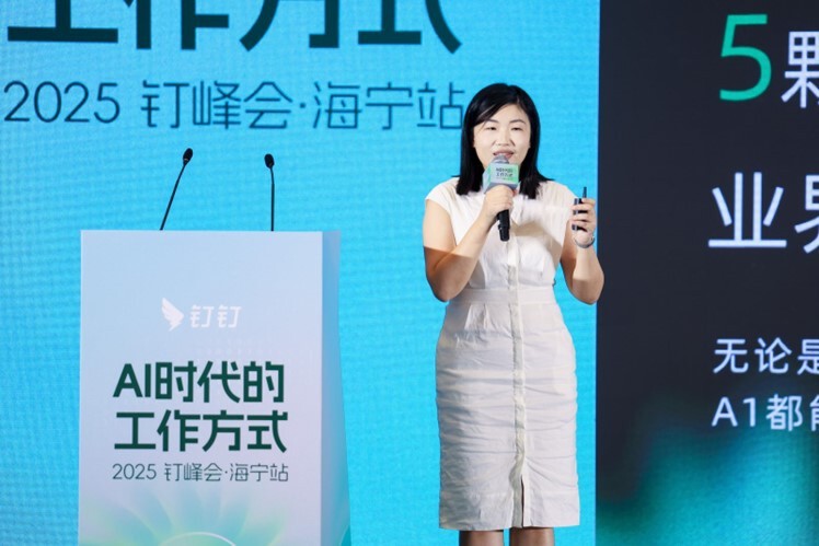 钉钉服务中心总经理路晓曼在致辞中指出:“AI是包括中国制造在内的所有企业和行业的技术机遇。钉钉作为国内最大的AI生产力平台,致力于用好的产品、普惠的AI服务千行百业,我们将一如既往地服务好海宁企业。”